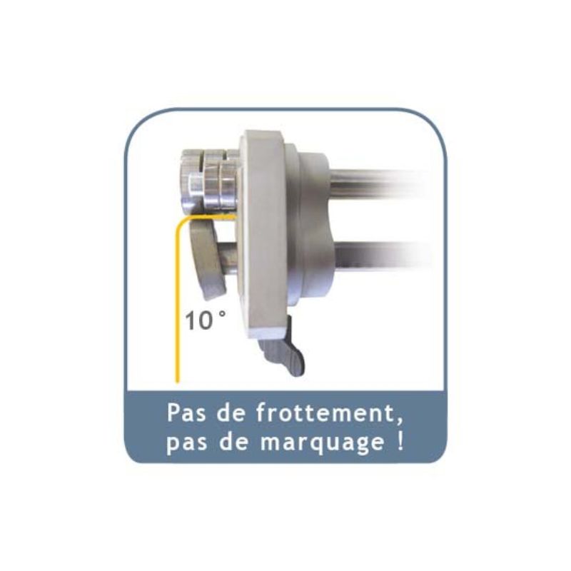 La plieuse est également équipée d’un double blocage de la hauteur de relevé par poignée papillon, garantissant un maintien sûr et stable durant le pliage. La poignée démontable offre une flexibilité d’utilisation, notamment pour les travaux nécessitant une hauteur maximale. Enfin, la plieuse est livrée avec une poche de rangement en tissu, facilitant son transport et sa protection.