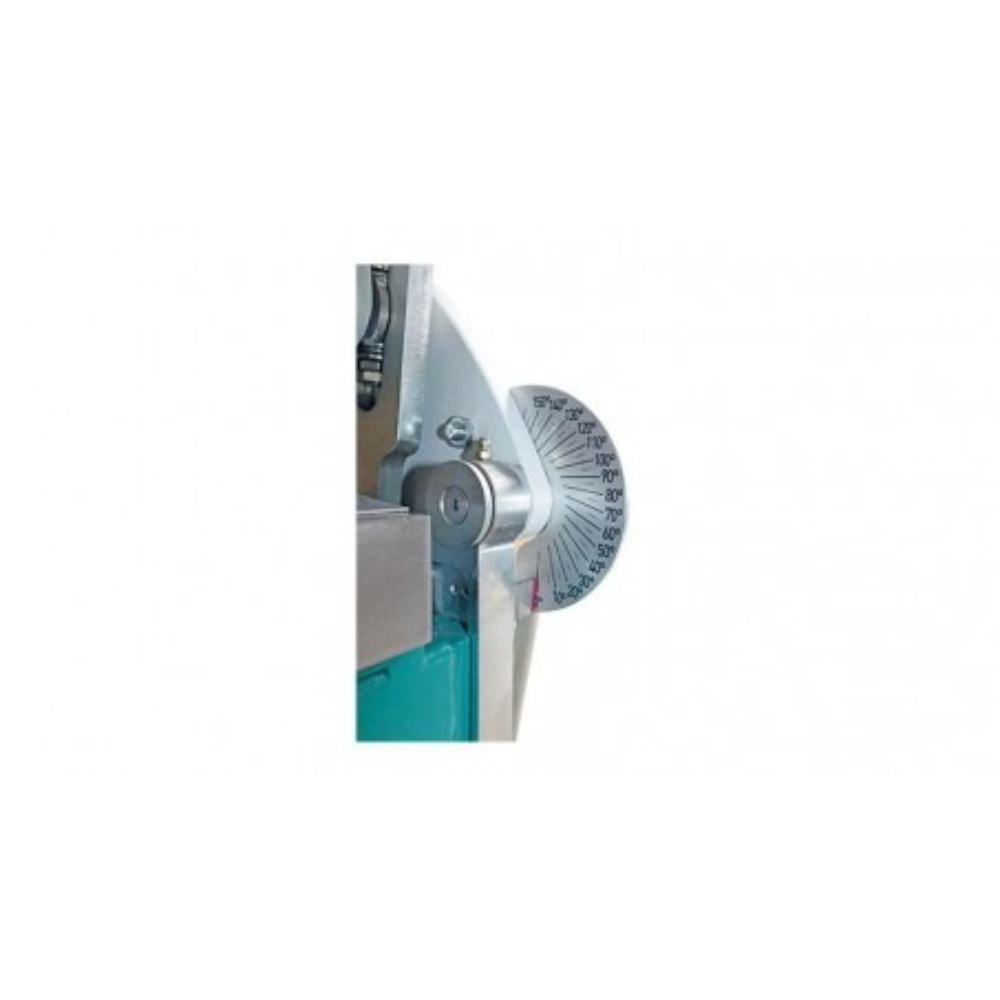 Cette plieuse est équipée d’une pince segmentée à ouverture circulaire de 95 mm, facilitant le dégagement des pièces, et d’un tablier ergonomique avec règle interchangeable, garantissant un confort optimal lors de l’utilisation. Le pliage est assisté par un vérin, ce qui assure fiabilité et rapidité de travail. La machine intègre une butée angulaire graduée et un secteur de repérage angulaire gradué pour des plis précis en série.