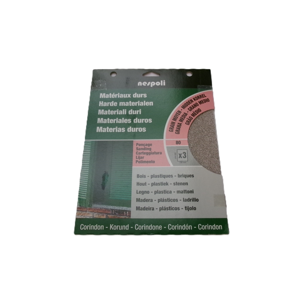 Découvrez Pochette de 3 feuilles papier abrasif corindon grain moyen 80 - NESPOLI - 749320 disponible à l'achat