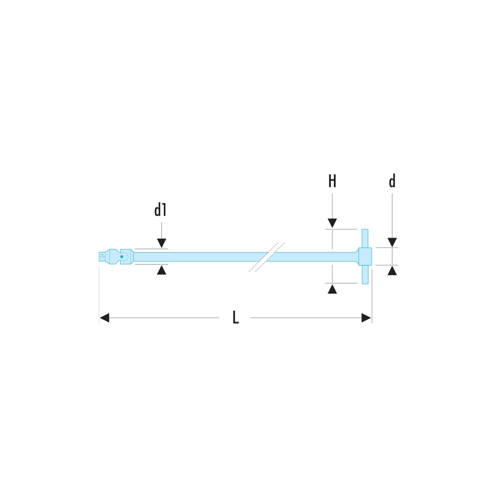 Cette poignée à cardan de 495 mm est conçue pour transmettre des couples élevés tout en maintenant la douille en position grâce à un système de freinage par ressort. Son angle de travail de 65° permet d'atteindre facilement des écrous peu accessibles. De plus, elle est dotée d'une poignée en T coulissante, vous offrant le choix d'une utilisation en position T ou L pour maximiser la puissance de rotation.