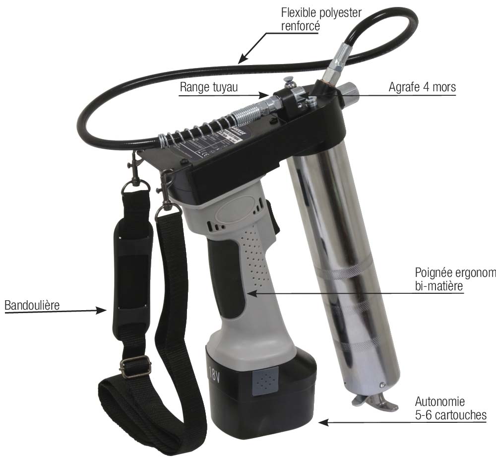 Pompe a graisse electrique a batterie 18v DRAKKAR EQUIPEMENT - 11389