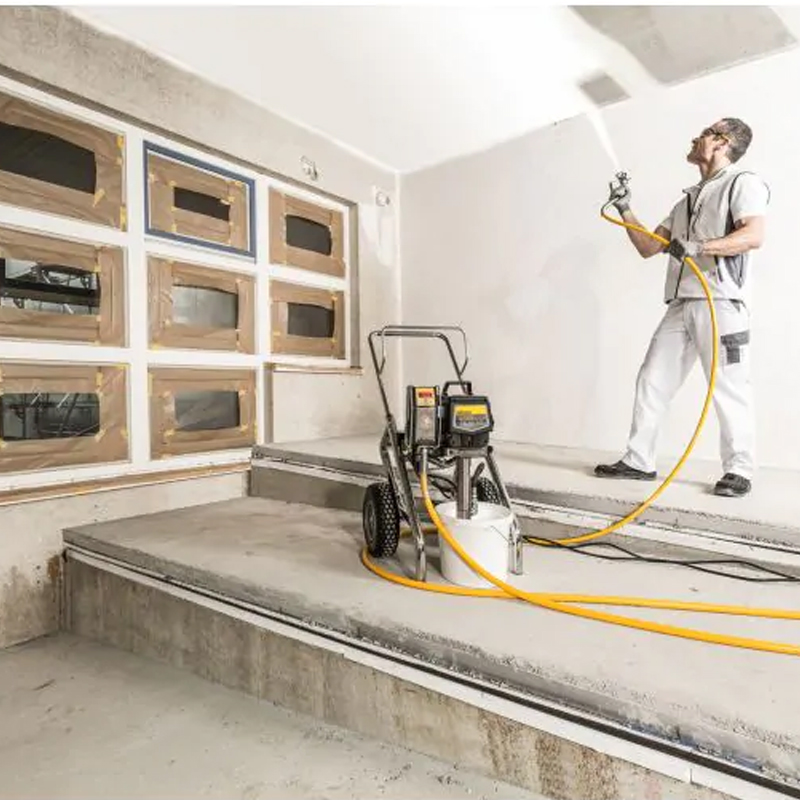 Pompe à piston électrique mobile et ultra-puissante, idéale pour divers travaux comme la peinture murale intérieure et extérieure, l'application de colle pour fibre de verre, les revêtements de sols, les enduits de surface Airless, et les revêtements ignifuges. Elle est équipée d'un flexible haute pression de 17,5 m, d'un pistolet Airless Vector Pro, d'un support de buse à changement rapide et de deux buses 2Speedtip. Son moteur est sans balais de carbone, ce qui garantit une plus grande durabilité. L'appareil dispose également d'un écran électronique multifonction pour un contrôle optimal.