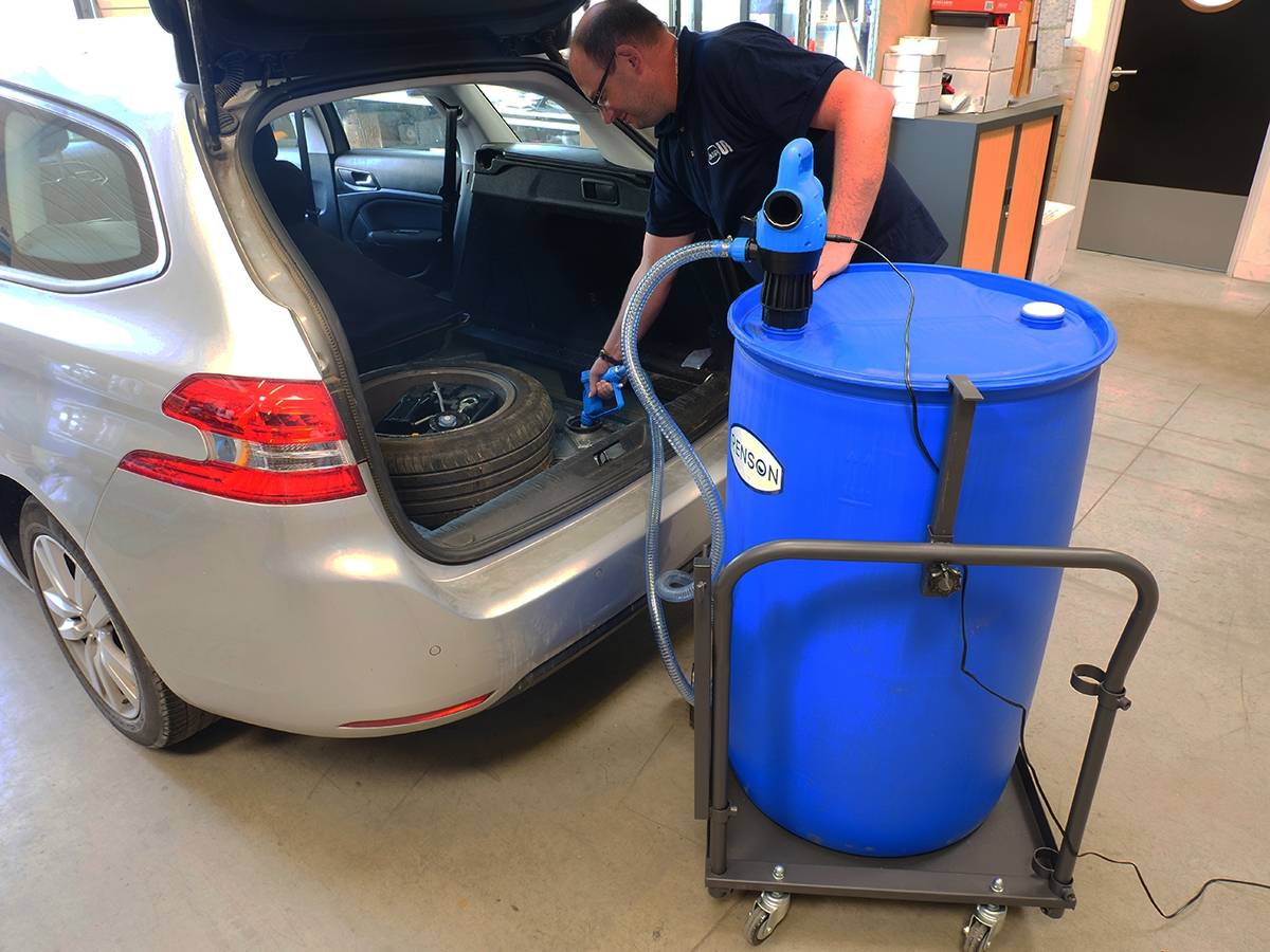Pompe électrique AdBlue conçue spécialement pour vider les fûts et/ou les IBC d’AdBlue.