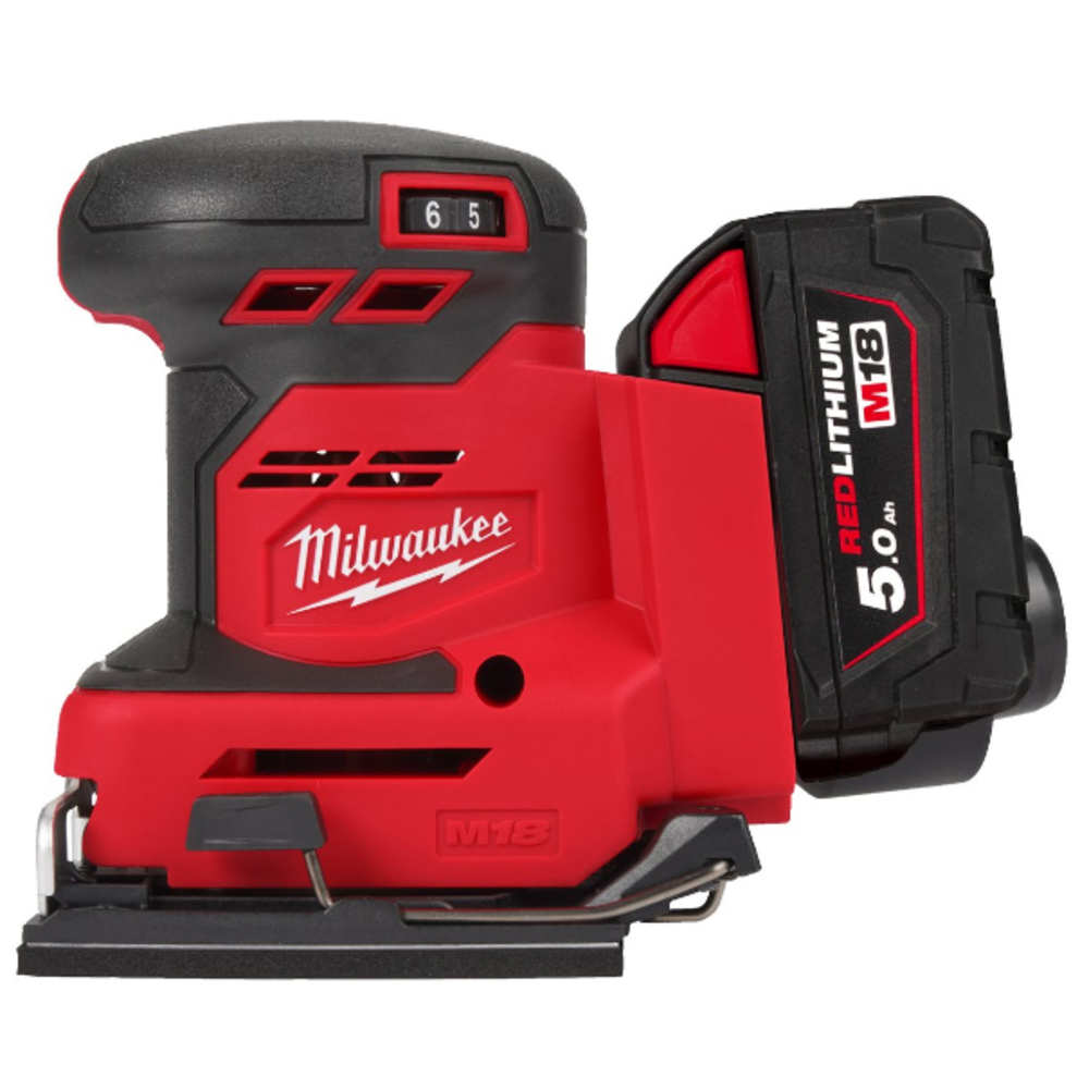 Ponceuse vibrante 1/4 feuille, 18V, 5.0Ah - Sac, 2 batteries M18 B5, 1 chargeur M18-12FC MILWAUKEE - 4933479967