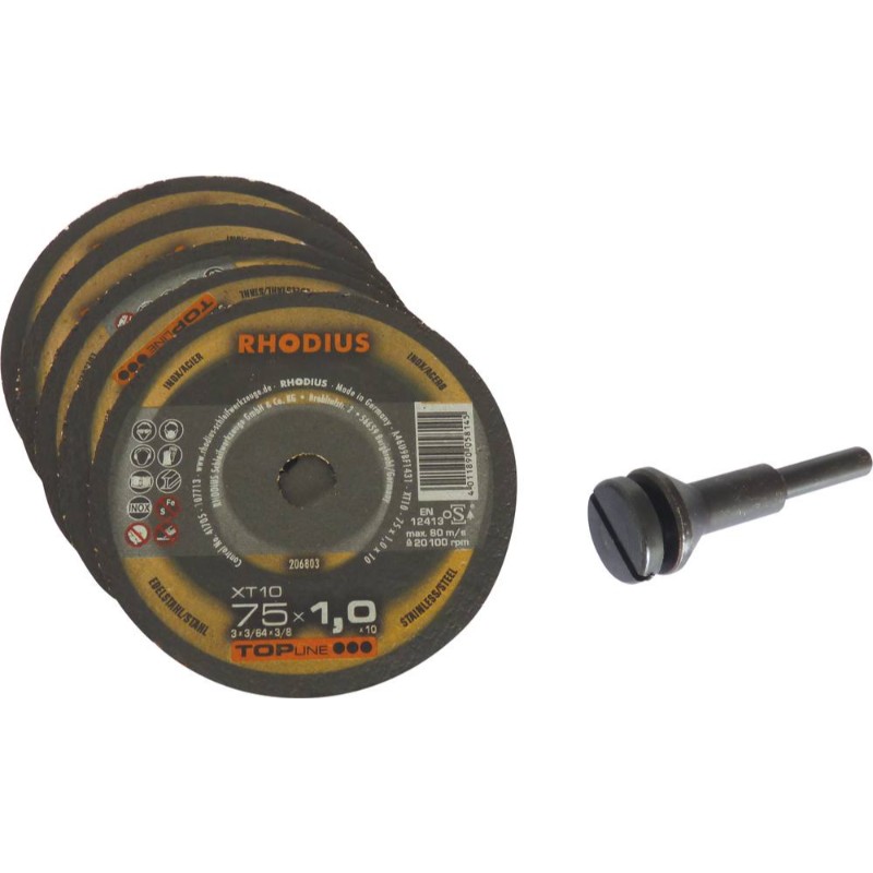 Découvrez Porte-meule sur tige 6mm avec 5 disques 76mm - blister - 14151 disponible à l'achat