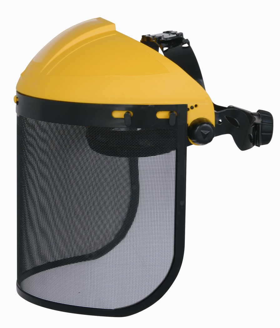 Porte-visière avec protection frontale + visière VISOR-G : visière grillagée à bord plastique.