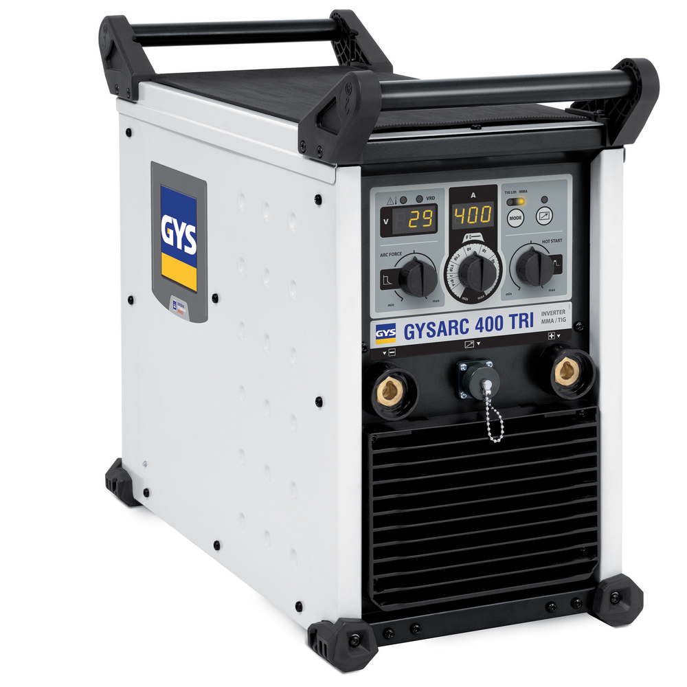 Le poste de soudure MMA 400 A - GYSARC 400 TRI est un générateur triphasé innovant, idéal pour des performances de soudage exceptionnelles, que ce soit en MMA, en TIG ou en gougeage.