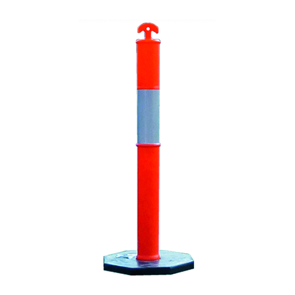 Balise haute visibilité avec bandes réfléchissantes classe 2 et socle en caoutchouc lesté.