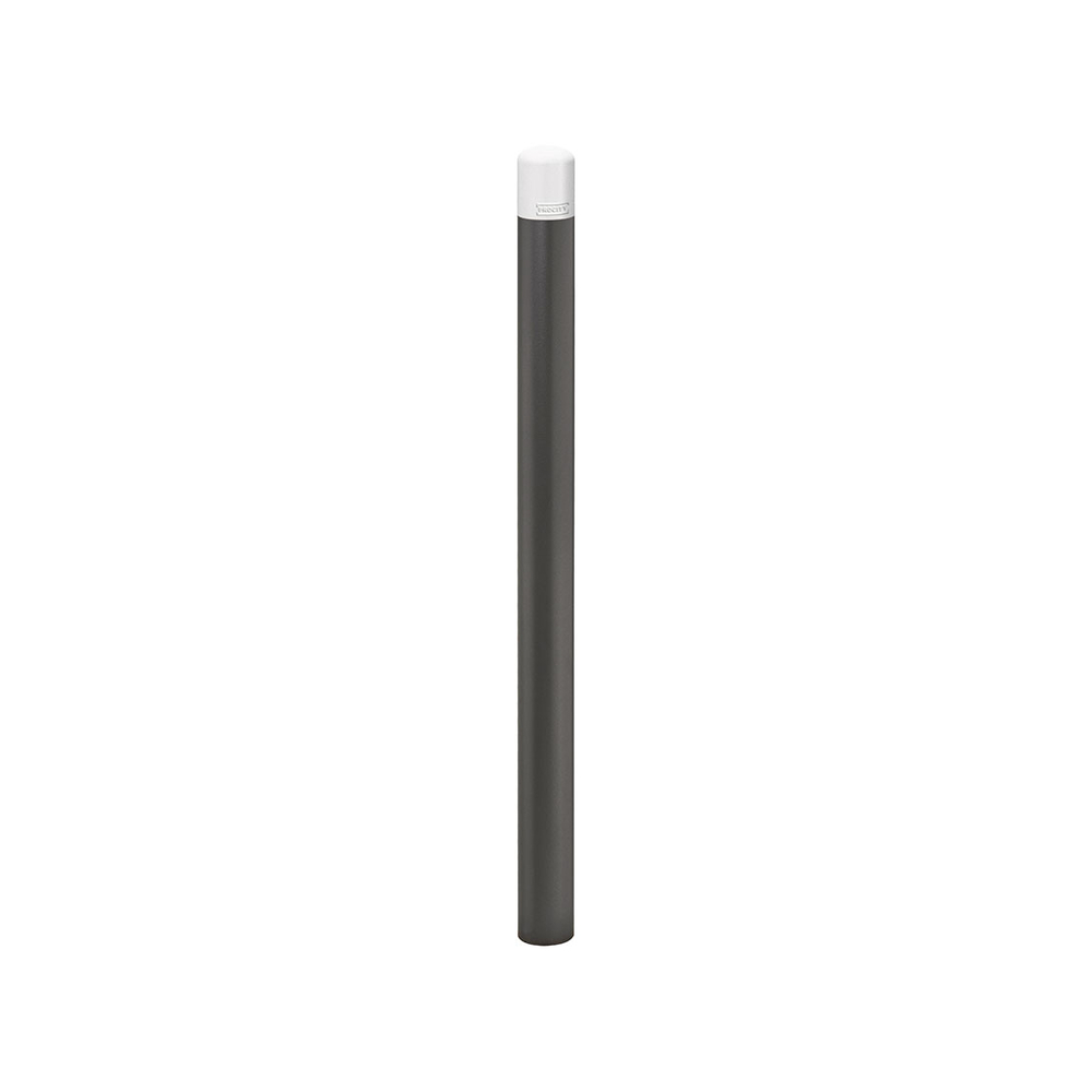 Ce potelet se décline en trois dimensions (Ø 76, Ø 60 ou Ø 90 mm) et est fabriqué en acier, idéal pour répondre aux normes de visibilité afin d'aider les personnes malvoyantes. Sa hauteur hors sol est de 1200 mm, tandis que la hauteur totale atteint 1380 mm, ce qui le rend facilement identifiable. La finition est réalisée par peinture sur zinc dans un coloris gris Procity, complété par un blanc RAL 9010, offrant ainsi un contraste visuel efficace.