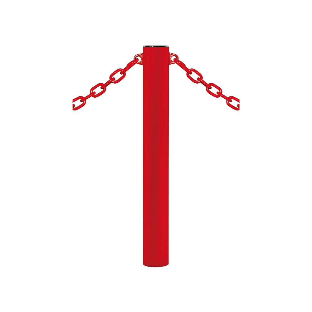 Potelet Province à chaînes RAL3020 - Potelet Ø114mm - 2 anneaux - Pommeau Inox brossé - PROCITY - 206395.3020