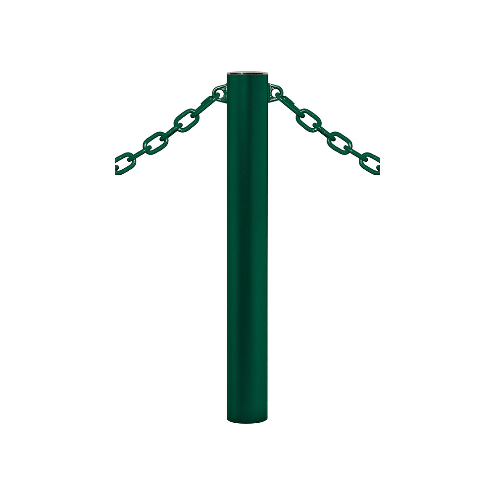 Potelet Province à chaînes RAL6005 - Potelet Ø114mm - 2 anneaux - Pommeau Inox brossé - PROCITY - 206395.6005