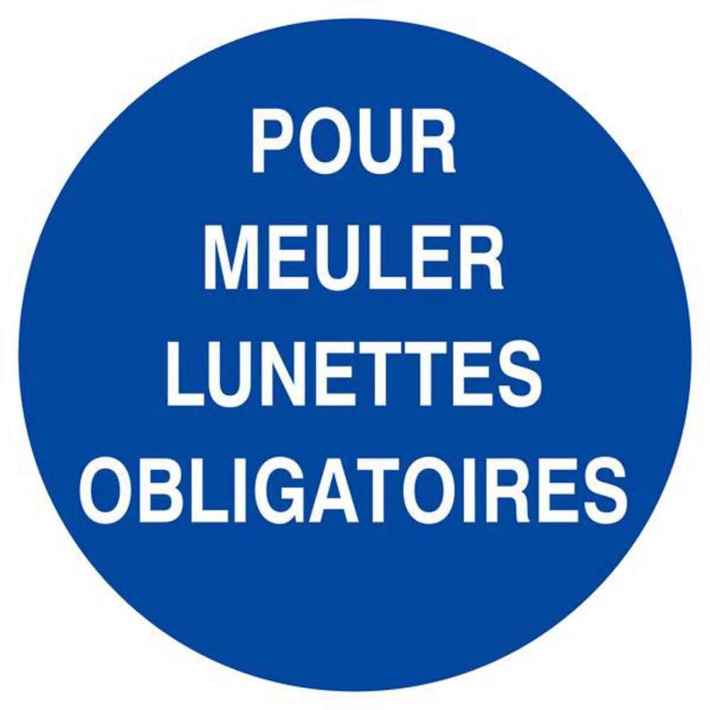 Sa conception est spécifiquement destinée à signaler l'obligation de porter des lunettes de protection, offrant ainsi une visibilité claire pour prévenir les accidents. Pour un fonctionnement optimal, il est recommandé de l’installer dans des zones où des travaux de meulage sont effectués, permettant ainsi de maintenir un environnement de travail sécurisé.