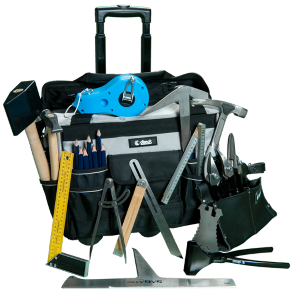 - Inclus : cisaille, compas, cordeau et autres outils variés.