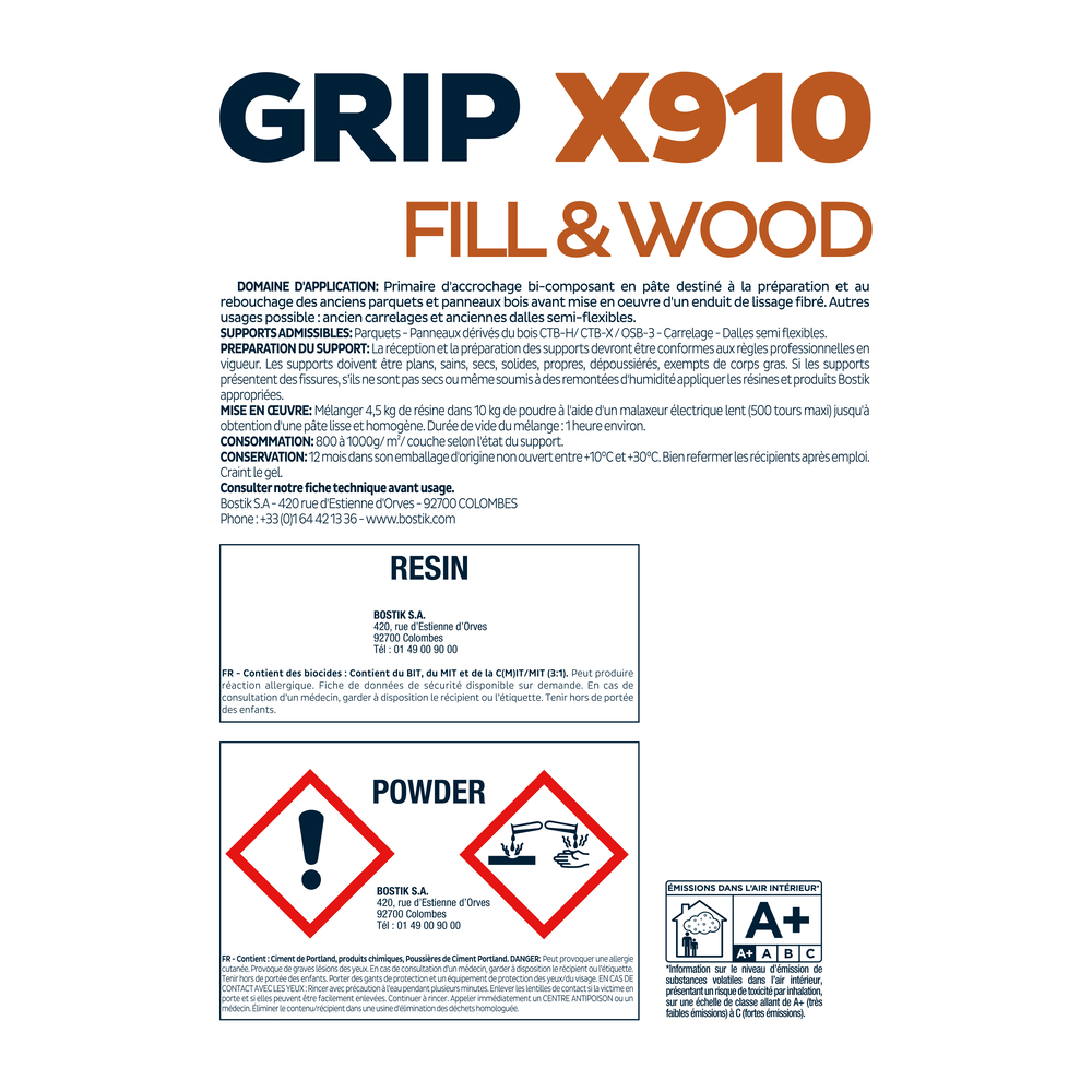 Découvrez Primaire spéciaux Grip X910 Fill & wood - Poudre + adjuvant liquide - Kit de 14,5kg - BOSTIK - 30615726 disponible à l'achat
