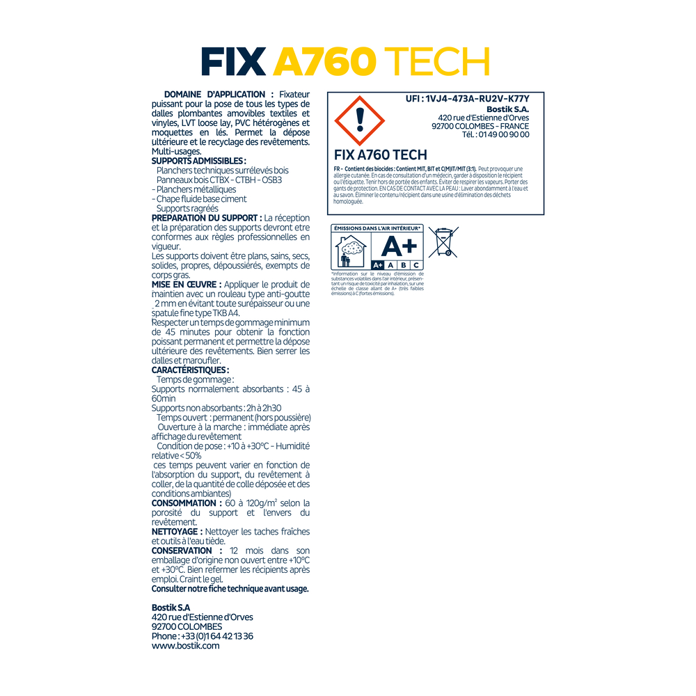 Le Fix A760 Tech de BOSTIK est un produit de maintien conçu pour dalles plombantes, offrant une solution efficace pour la dépose et le recyclage.
