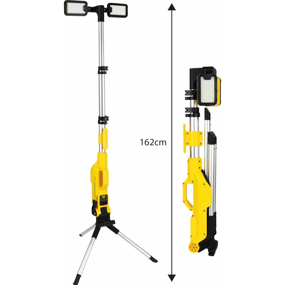 Le projecteur LED DRAKKAR 124W est conçu pour offrir un éclairage extrêmement puissant, atteignant jusqu’à 8000 lumens, ce qui permet une portée lumineuse impressionnante de 120 mètres. Il est équipé d’un mât télescopique ajustable, dont la hauteur peut être réglée entre 103 et 162 cm, offrant ainsi une grande adaptabilité selon les besoins. Ses têtes pivotantes facilitent l’orientation précise de la lumière. Ce projecteur est également rechargeable grâce à une batterie intégrée de 8800 mAh. Il propose deux modes d’éclairage différents pour s’adapter à diverses situations. De plus, il dispose de ports USB permettant de recharger d’autres appareils électroniques. Compact, robuste et résistant à l’eau avec une certification IP64, ce projecteur est conçu pour une utilisation fiable dans diverses conditions.