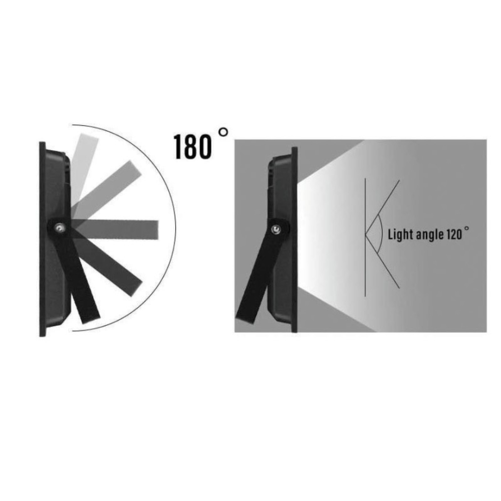 - Installation polyvalente : angle réglable à 360°, montage au mur, plafond ou sol, adapté pour jardins, cours, façades et terrasses.