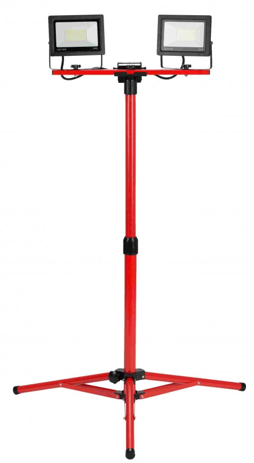 Projecteur télescopique à LED 2X50W - 2m de câble H05RNF 3G1 - fiche IP44 - 8000 lumen - 6400°K - hauteur mini environ 0,75m - hauteur maxi environ 2,40m - économie d'énergie - très grande luminosité - faible dégagement de chaleur