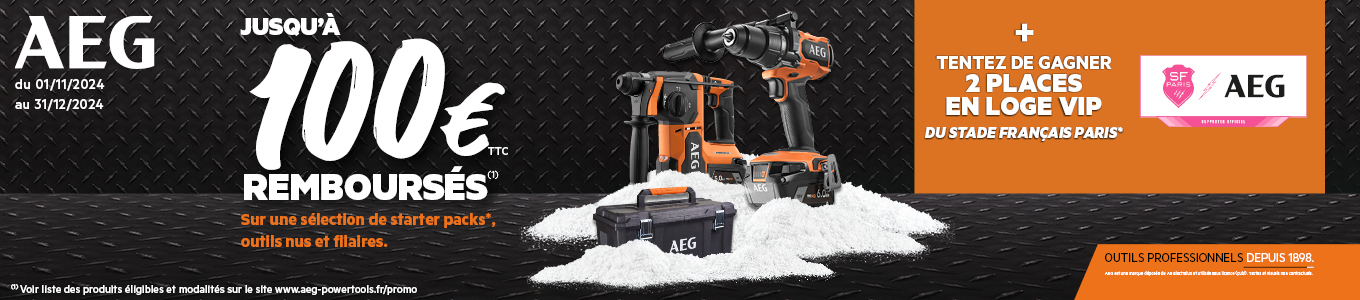 1. ACHETER 1 ou 2 outils AEG parmi les références mentionnées dans le tableau ci-dessous entre le 01.11.2024 et le 31.12.2024 inclus dans un des magasins ou sites internet (immatriculés en France uniquement) participants à l’opération, hors Amazon.
