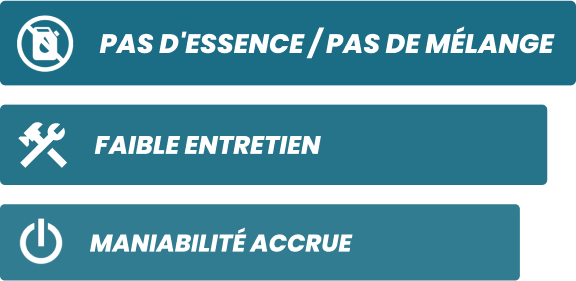 Les outils à batterie sont conçus pour offrir un fonctionnement plus silencieux, moins d'entretien, une meilleure maniabilité et produisent souvent moins de vibrations que leurs équivalents à essence. Ces outils permettent d'effectuer des tâches longues, soutenues et exigeantes sans effort !
