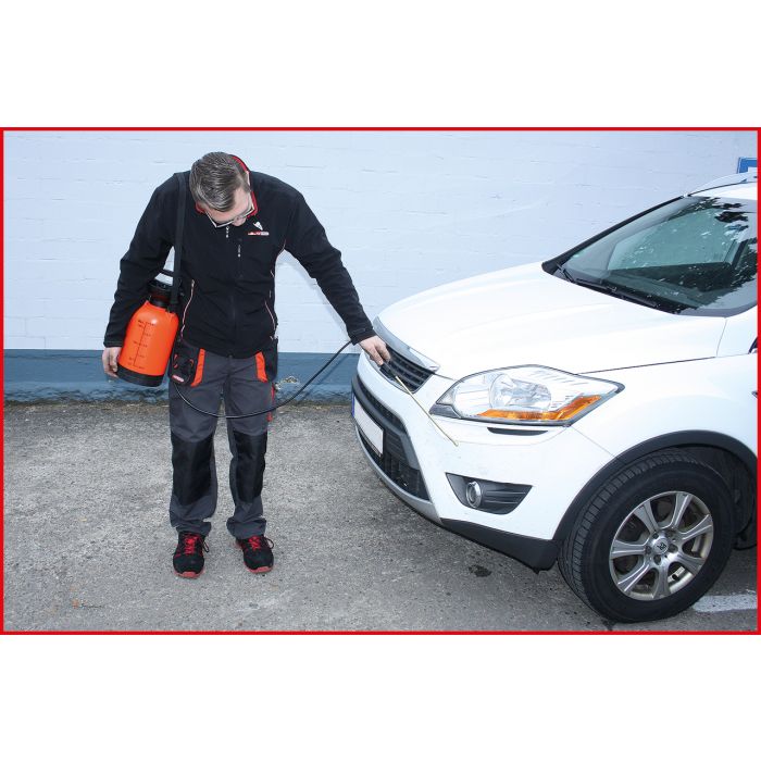 Découvrez le pulvérisateur à bandoulière de 5 litres, idéal pour l'application de produits chimiques et de nettoyage.