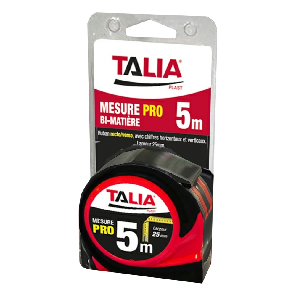 Quintuple metre boitier rouge bi-matière 25mm - TALIAPLAST - 490765
