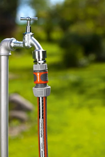 Le raccord rd'arrosage rapide GARDENA permet un raccordement au début de tuyau. Il se fixe directement au nez de robinet. La connexion et la déconnexion au nez de robinet se fait en 1 clic. Grâce à la technologie brevetée POWER GRIP, la bague de serrage optimisée assure un excellent maintien du tuyau et un montage facile. Des creux de préhension en gomme rainurée garantissent un maniement aisé. . Convient pour des tuyaux de diamètre 19 mm (3/4’’).
