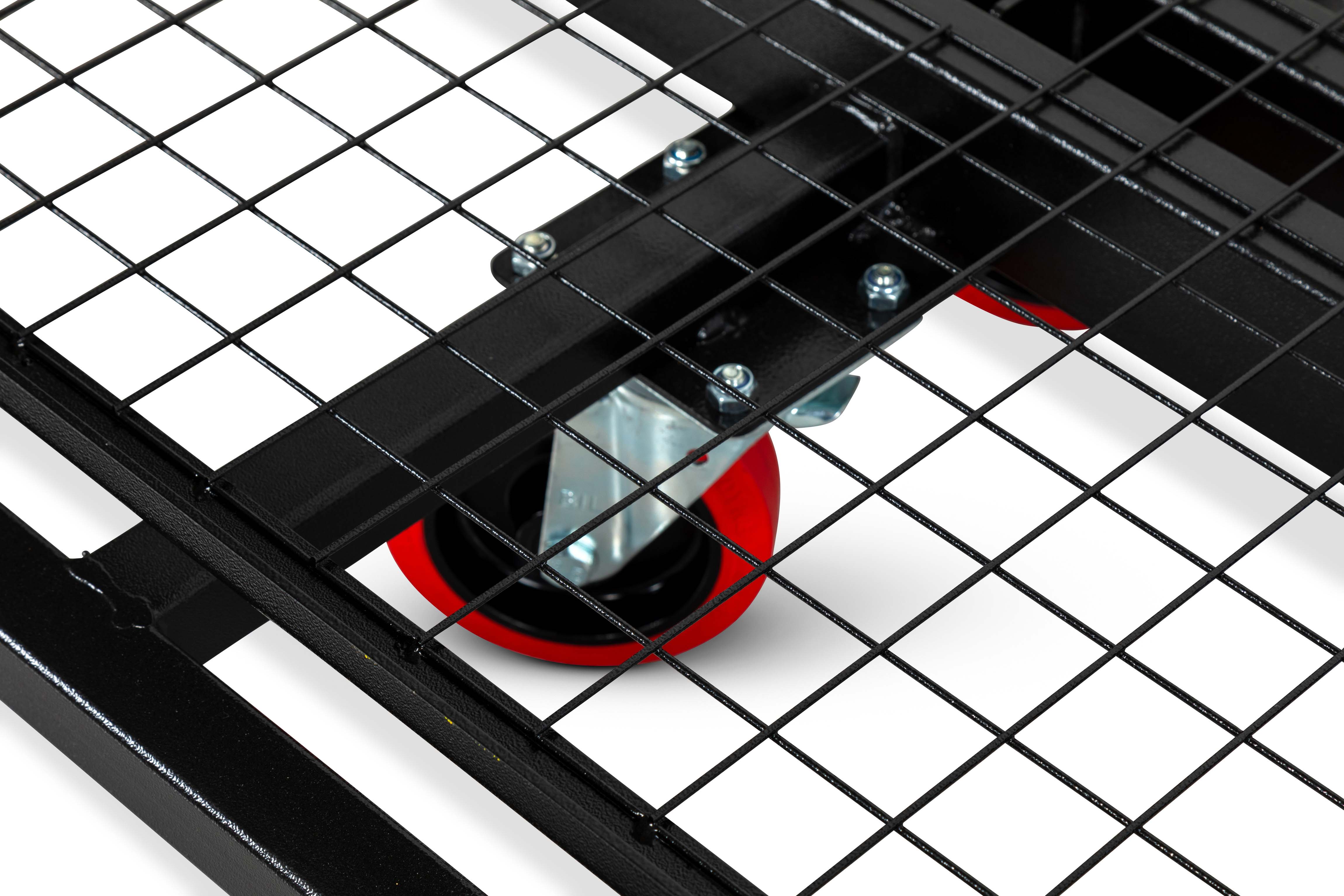 Les roulettes robustes et résistantes permettent de manœuvrer sans effort sur chantier et sa structure robuste en acier thermolaqué répond aux exigences sur site.