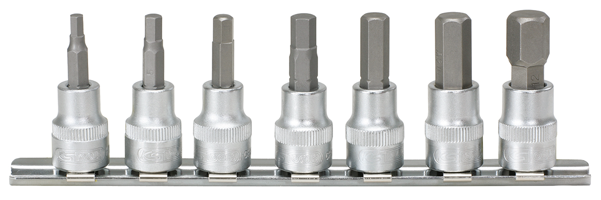 Découvrez Rail de 7 douilles tournevis ULTIMATE 6 pans 3/8" KS TOOLS - 922.3962 disponible à l'achat