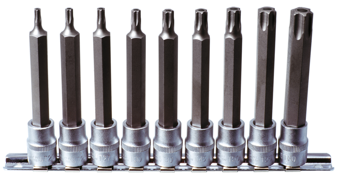 Découvrez Rail de 9 douilles tournevis TORX percé 3/8" T20 à T60 KS TOOLS - 922.3826 disponible à l'achat