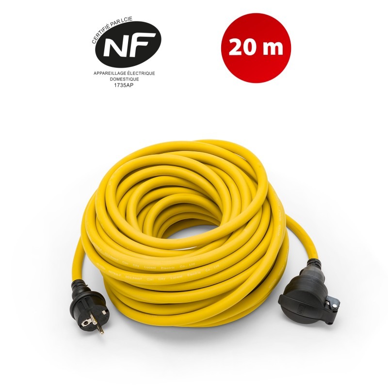 L’indice de protection IP44 et le capuchon d’étanchéité garantissent une utilisation sécurisée en extérieur, même sous la pluie ou dans des environnements poussiéreux, tout en protégeant les connexions électriques. La fiche et la prise sont conformes aux normes françaises et certifiées NF/CE, offrant ainsi une sécurité maximale pour l’utilisateur. Le câble jaune haute visibilité réduit les risques d’accidents en restant facilement repérable sur le chantier ou dans le jardin.