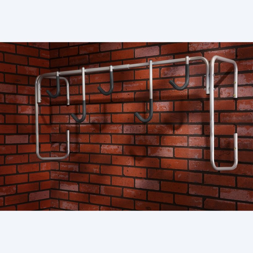 - Optimise l'espace avec un rangement mural pour 5 vélos.