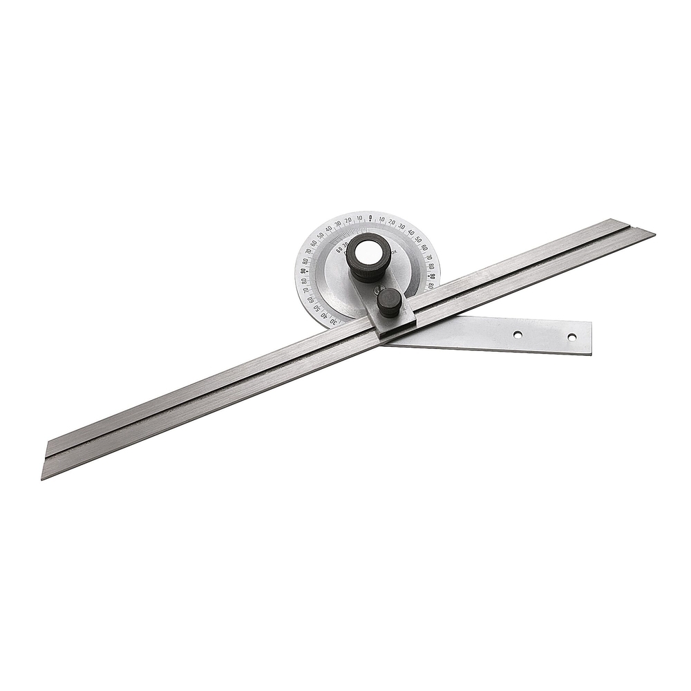 Fabriqué en acier inoxydable, il assure durabilité et résistance à la corrosion. Avec une longueur de 300 mm, il s'adapte à de nombreuses situations de travail. Le produit est livré dans un coffret pratique mesurant 370 x 145 x 35 mm, offrant une protection optimale et un rangement facile. Ce rapporteur d'angle est un allié incontournable pour tous vos projets de précision.