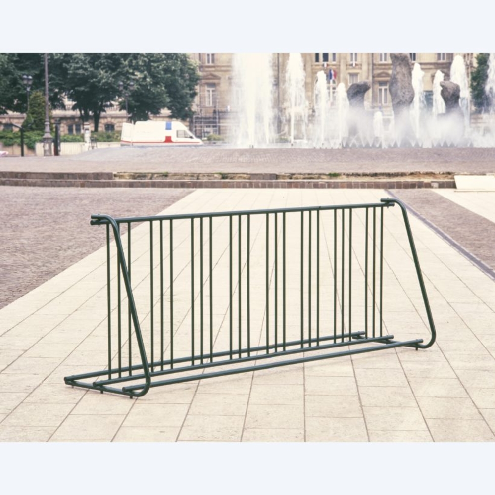 Avec des dimensions de 2500 x 700 x HT 700 mm, il est conçu pour s'intégrer parfaitement dans divers espaces extérieurs. Son coloris vert lui permet de se fondre harmonieusement dans votre environnement. Optez pour ce râtelier pour optimiser l’utilisation de votre espace de stationnement.