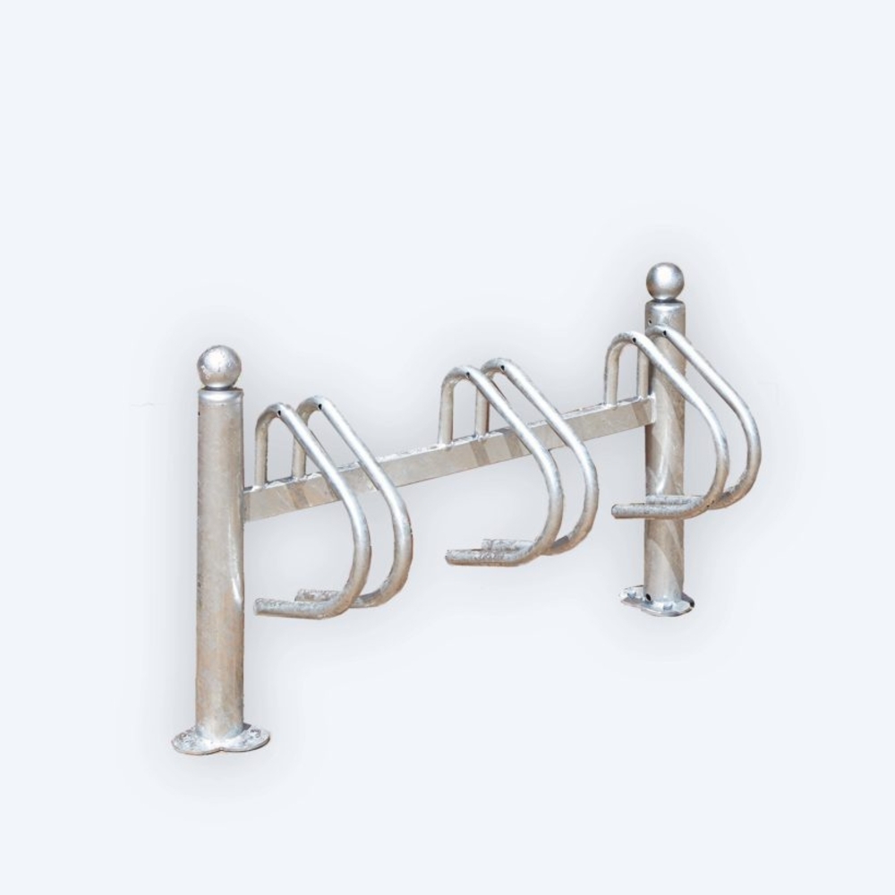 Le râtelier New York 3 vélos côte à côte, référence B209V3GA, est un porte-vélos robuste et pratique conçu pour accueillir trois vélos alignés côte à côte avec un entraxe de 38 cm entre chaque vélo. Ses dimensions sont de 1117 x 394 x 640 mm pour un poids de 9,60 kg.