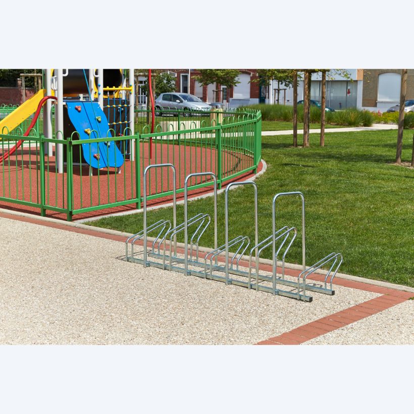 Découvrez Râtelier sur 2 niveaux pour 5 vélos Modèle Hollande côte à côte avec arceaux antivol - MOTTEZ - B200AR disponible à l'achat