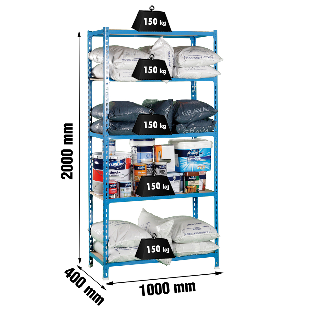 Rayonnage bois-métal léger sans vis 2000x1000x400 - 5 niveaux Bleu/Bois - SIMON RACK - 8435104907863
