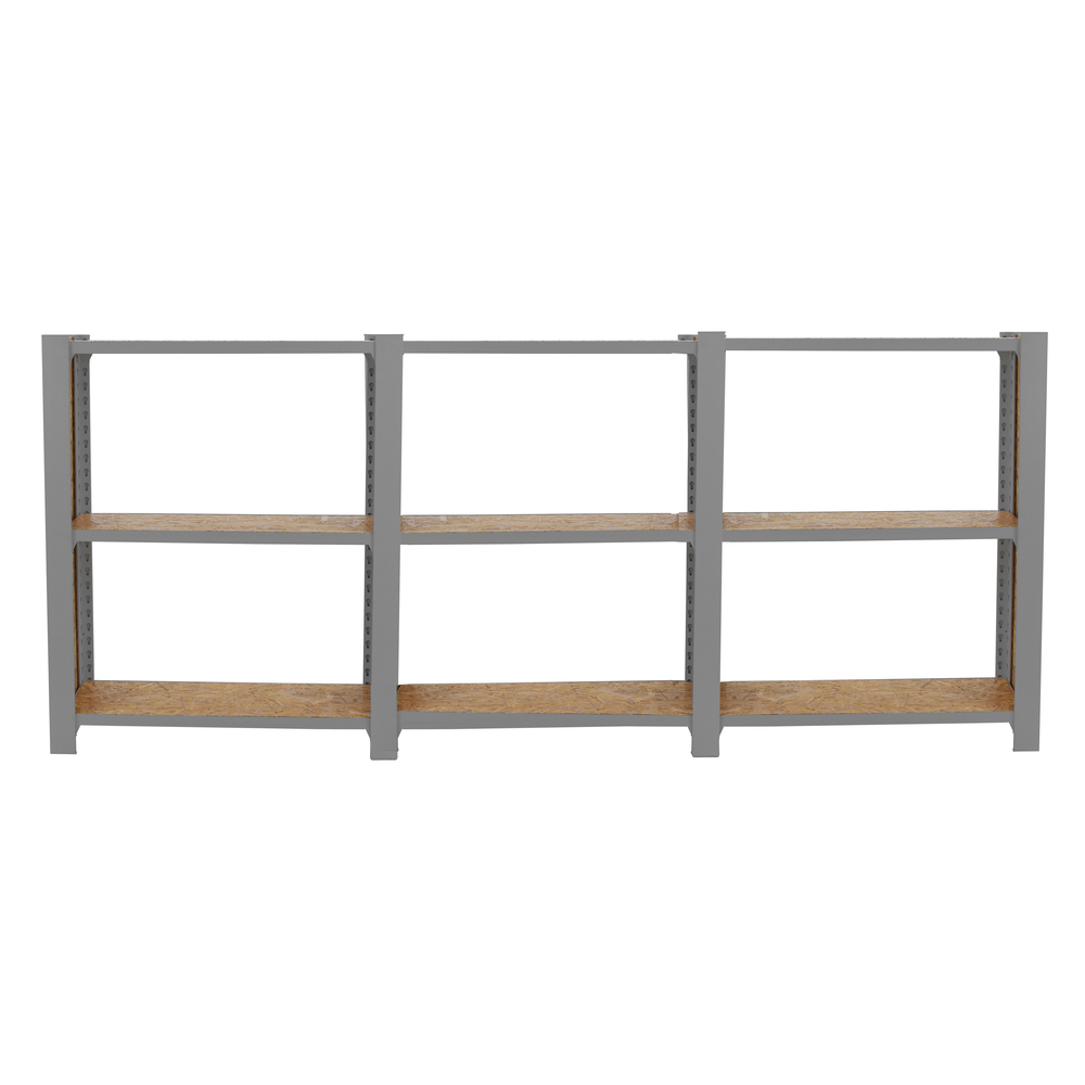 Ce modèle mesure 1000 mm de large, 2400 mm de haut et 300 mm de profondeur. Chaque niveau peut supporter jusqu'à 200 kg, pour un total de 9 étagères sur 3 modules. Les plateaux en bois OSB de 15 mm d'épaisseur assurent robustesse et performance. Sa finition en époxy polyester et son profil en T garantissent une durabilité sans arêtes coupantes. Ce produit, de qualité européenne, est parfaitement adapté à une utilisation tant professionnelle que personnelle, s’intégrant harmonieusement dans un décor à la fois industriel et vintage.