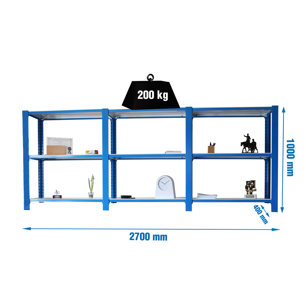 Rayonnage de bureau charge légère sans vis 1000x2700x400 - 3 niveaux Bleu/Blanc - SIMON RACK - 8435104998397