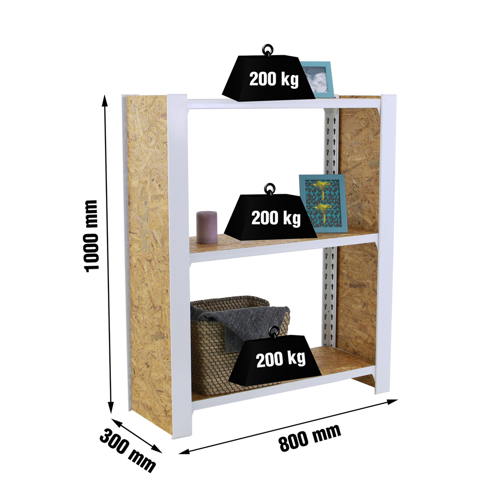 Rayonnage de bureau charge légère sans vis 1000x800x300 - 3 niveaux Blanc - SIMON RACK - 8425437127359