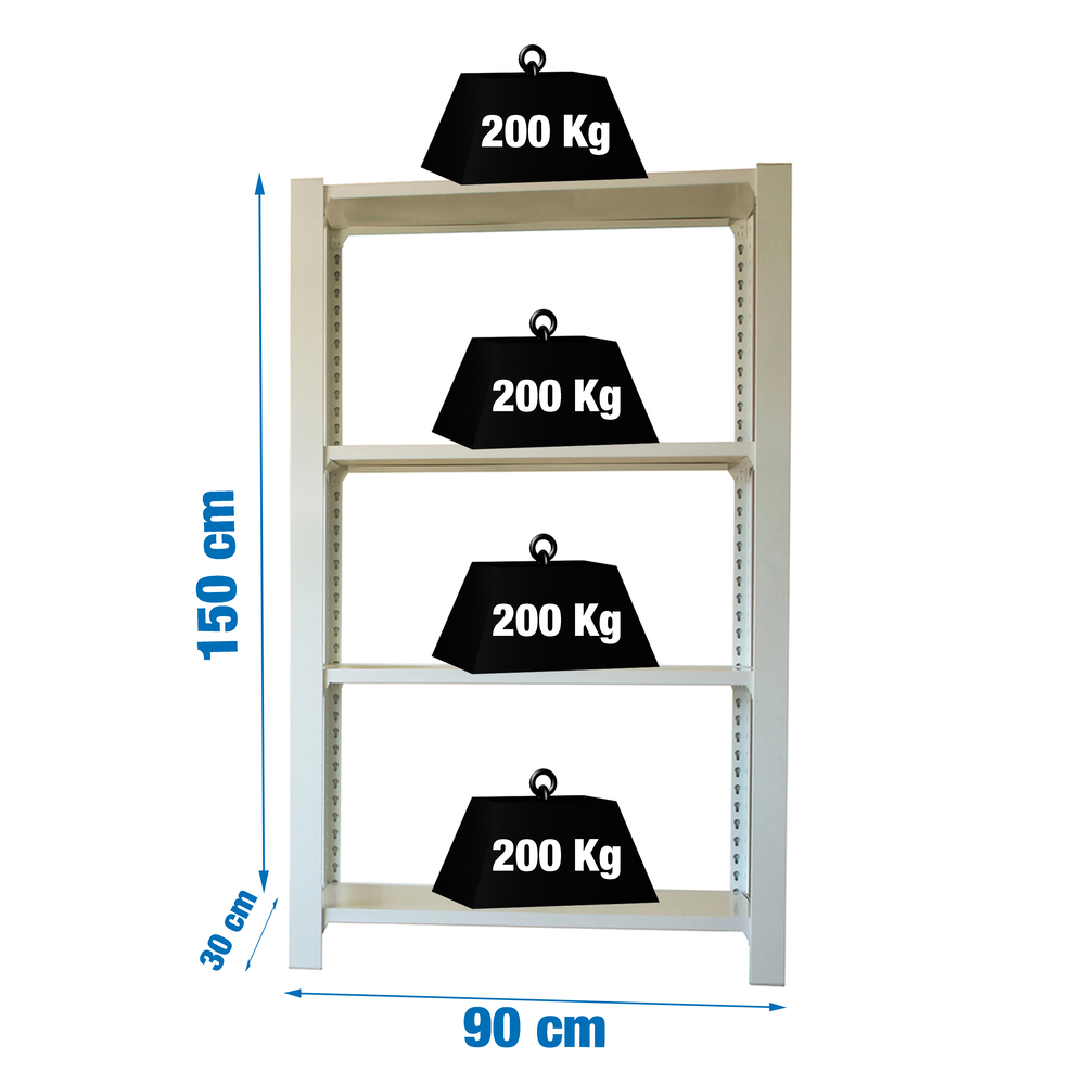 Rayonnage de bureau charge légère sans vis 1500x900x300 - 4 niveaux Blanc - SIMON RACK - 8435104914304