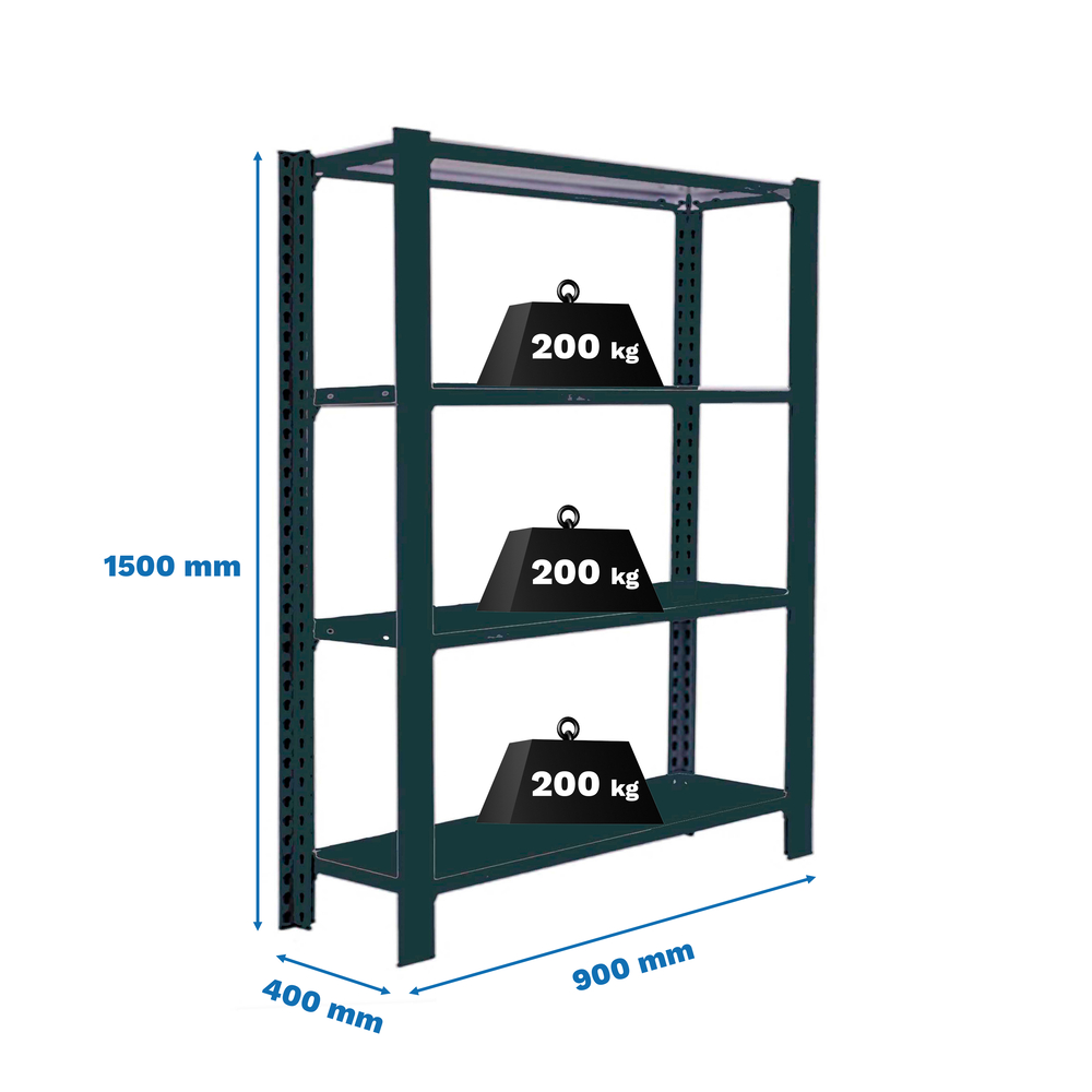 Ce rayonnage mesure 1500x900x400 mm et est conçu pour supporter jusqu'à 200 kg par niveau sur ses 4 niveaux. Son plateau métallique offre une solidité accrue et une longue durabilité. Fabriqué en Europe, il est une solution pratique et élégante pour optimiser le rangement dans vos bureaux ou ateliers.