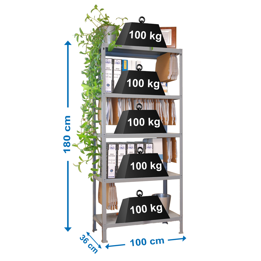 Rayonnage de bureau charge légère sans vis 1800x800x360 - 5 niveaux Gris - SIMON RACK - 8435104939376