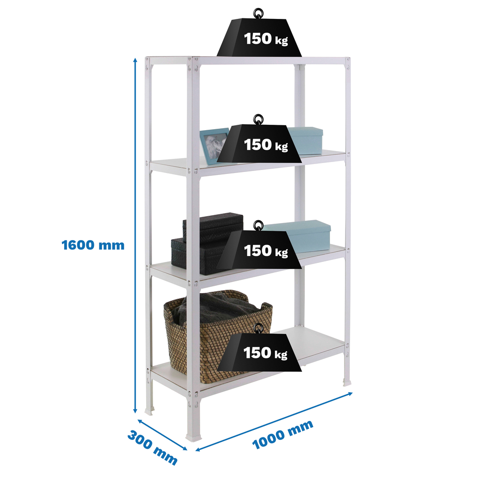 Rayonnage intérieur 1600x1000x300 - 4 niveaux Blanc - SIMON RACK - 8425437070013