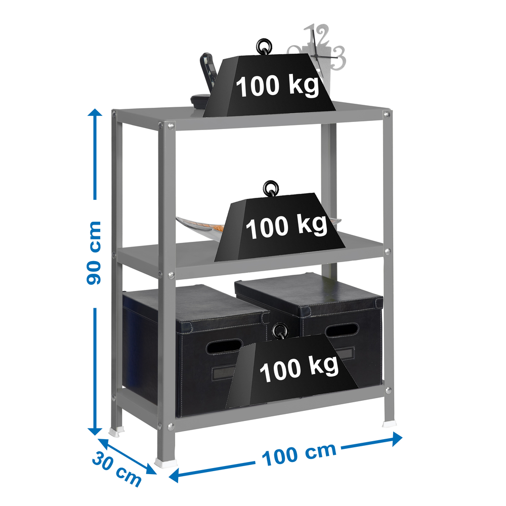 Rayonnage intérieur 900x1000x300 - 3 niveaux Gris - SIMON RACK - 8425437061455