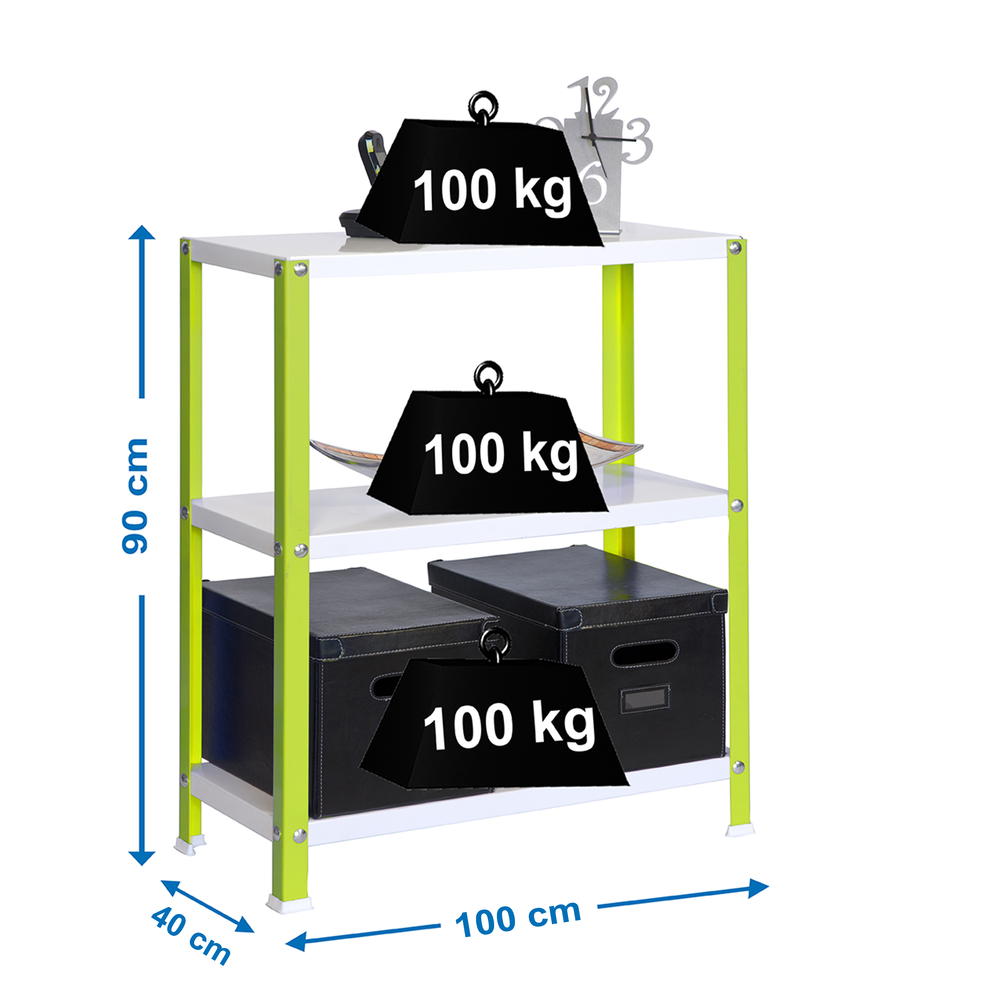 Rayonnage intérieur 900x1000x400 - 3 niveaux Vert/Blanc - SIMON RACK - 8425437062087
