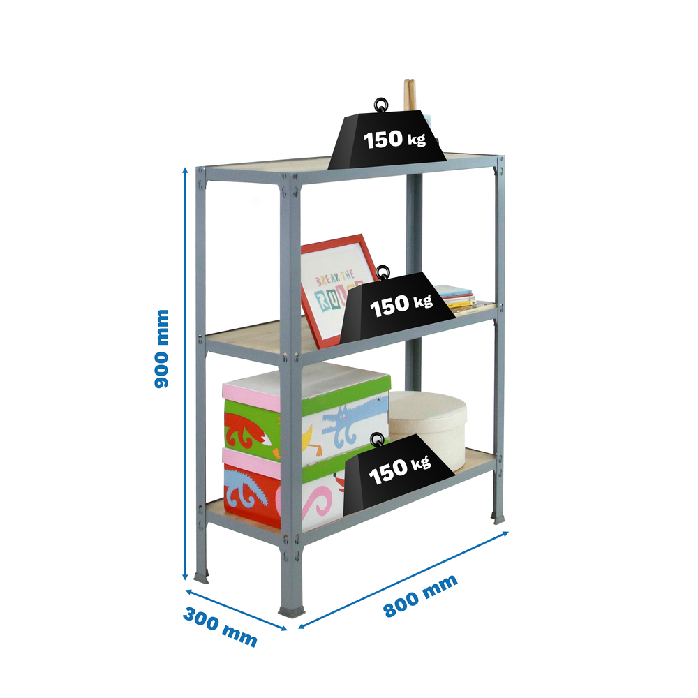 Rayonnage intérieur 900x800x300 - 3 niveaux Gris - SIMON RACK - 8425437136092