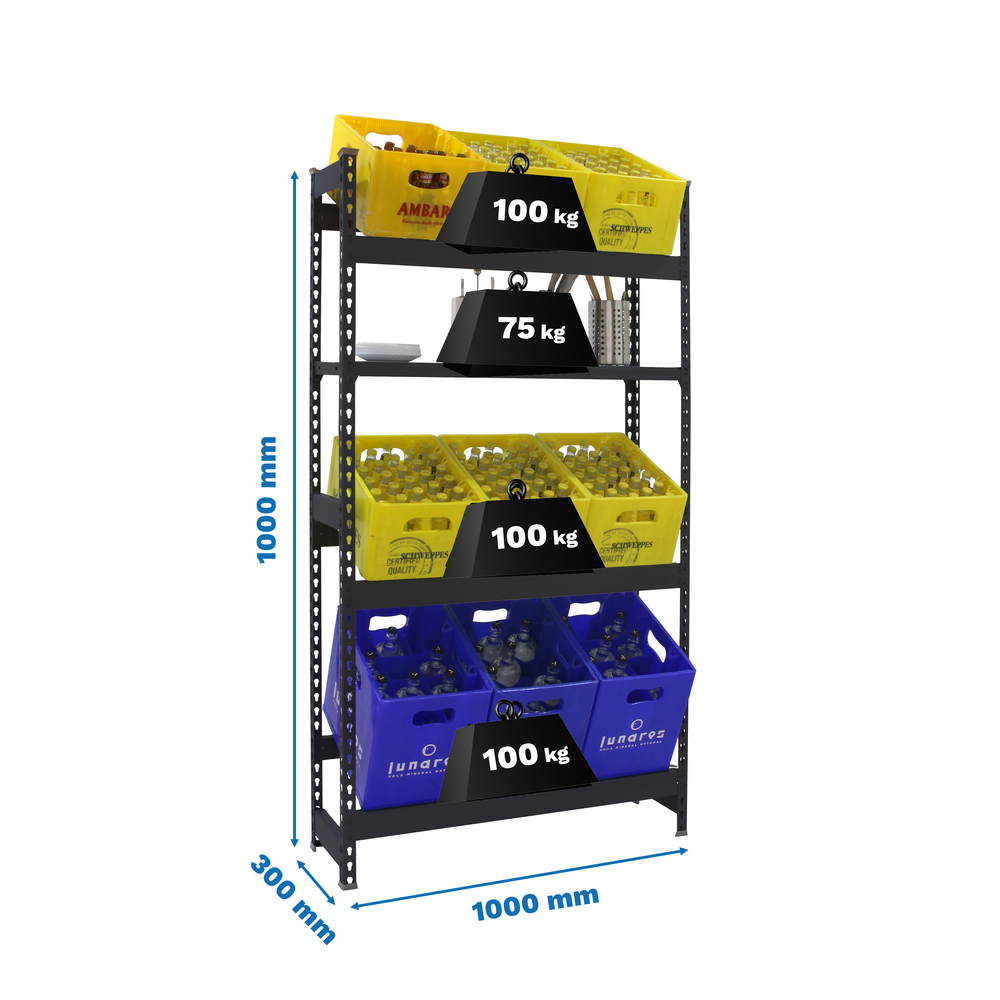Rayonnage léger tri de bouteille sans vis 1000x1000x300 - 4 niveaux Anthracite - SIMON RACK - 8425437129674