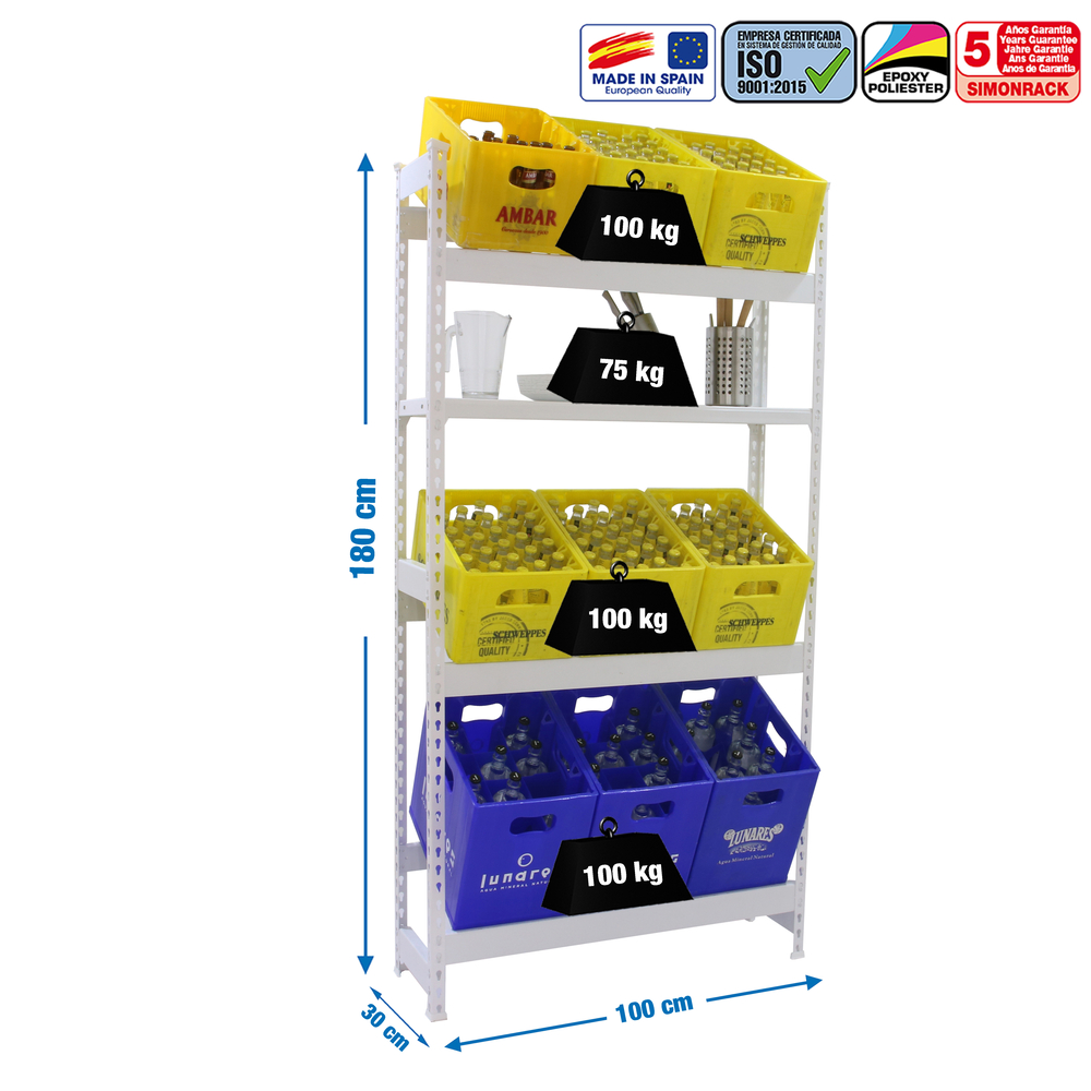 Rayonnage léger tri de bouteille sans vis 1000x1000x300 - 4 niveaux Blanc - SIMON RACK - 8425437087820