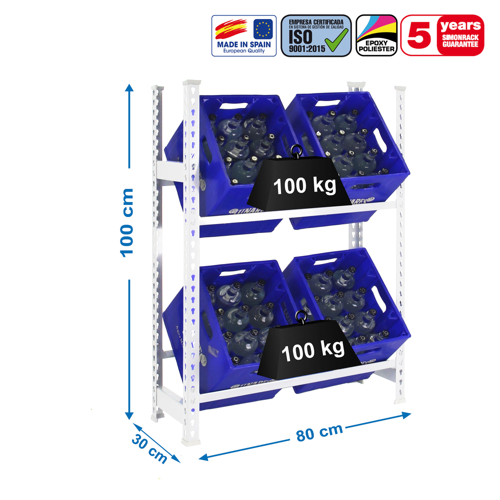 Rayonnage léger tri de bouteille sans vis 1000x800x300 - 2 niveaux Blanc - SIMON RACK - 8435104962503